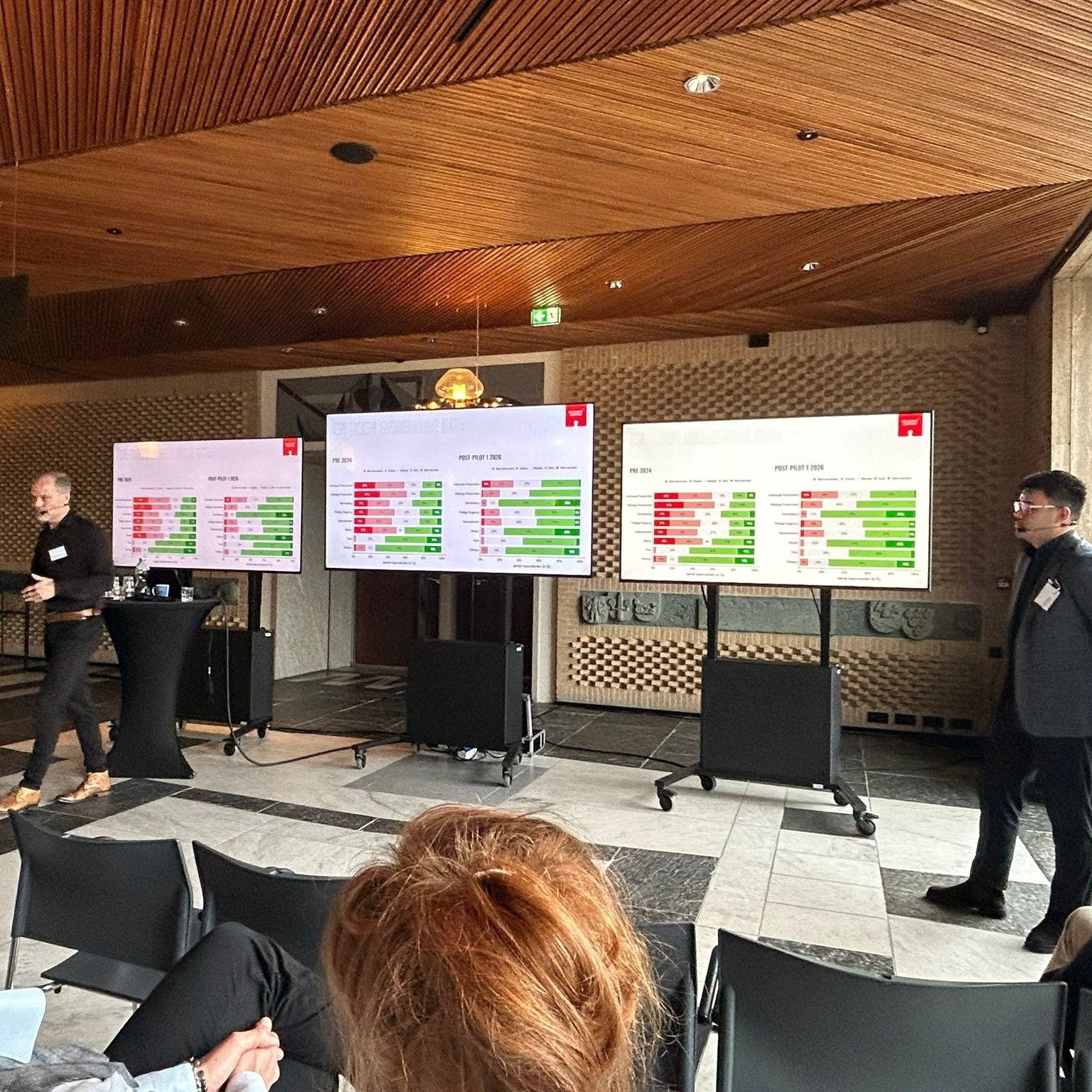 セッションでは、Veldhoen + CompanyのTim de Vos-Donkersと、ヘルダーラント州のプロジェクトリードであるFarlon Hubnerが、15年以上にわたる協働の歩みを紹介しました。この関係は、Veldhoen + Companyが州庁舎のABW導入を支援したことをきっかけに始まり、今日まで続いています。